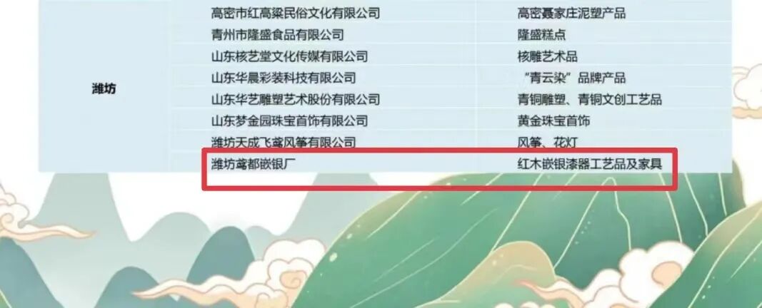 6月26日晚,2022山东省旅游发展大会在济宁市尼山圣境开幕。会上公布了“山东手造·优选100”获奖名录入选单位名单和提名单位名单。我区潍坊鸢都嵌银厂的红木嵌银漆器工艺品及家具成功入选(入选单位潍坊共8个)。