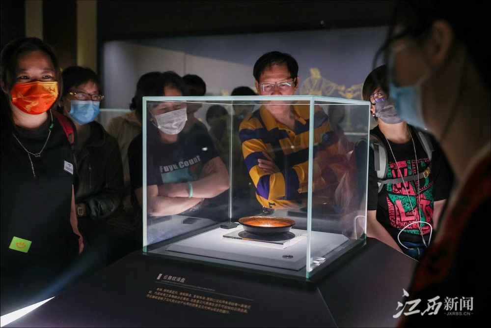 5月18日,观众在海昏侯国遗址博物馆观赏云兽纹漆盘。汉代海昏侯国遗址出土各类漆器3000余件,其数量之大、品种之多、用途之广、造型之美,都堪称汉代漆器的集大成者。