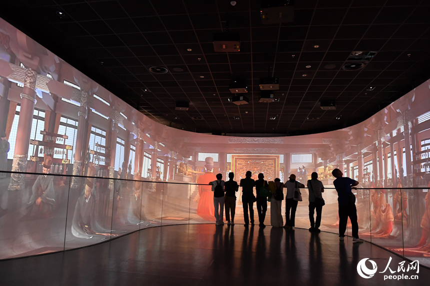 5月18日,游客们在沉浸式裸眼观影剧场内体验“刘贺的一天”。
