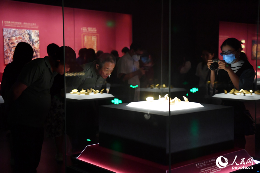 5月18日,观众在南昌海昏侯国遗址公园的展厅内观赏文物。