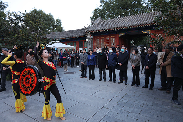 文化和旅游部非物质文化遗产司司长王晨阳,文化和旅游部恭王府博物馆馆长、党委书记冯乃恩,文化和旅游部恭王府博物馆副馆长王静,清华大学美术学院院长鲁晓波、艺术史论系主任陈岸瑛、艺术史论系教授陈池瑜、工艺美术系副教授周剑石,清华美院驻荆州传统工艺工作站站长、清华大学副教授杨佩璋,荆州市委常委、宣传部长刘辉萍,湖北省文化和旅游厅非遗处处长、一级调研员孙旭,荆州市文化和旅游局党组书记、局长付良超,清华美院驻荆州传统工艺工作站执行站长、长江艺术工程职业学院院长许小兰等领导和嘉宾参加开幕活动。王晨阳、鲁晓波、刘辉萍、孙旭共同为活动击鼓开幕。
