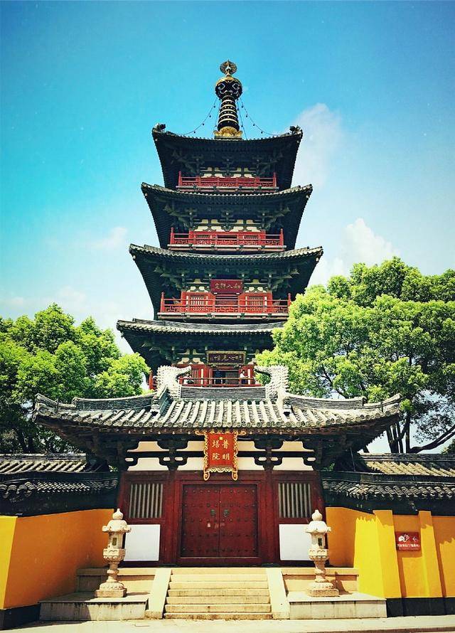 苏州寒山寺(原名“妙利普明塔院”)位于江苏省苏州城西阊门外5公里外的枫桥镇,唐代贞观年间,相传唐时僧人寒山曾在该寺居住,故改名为“寒山寺”。