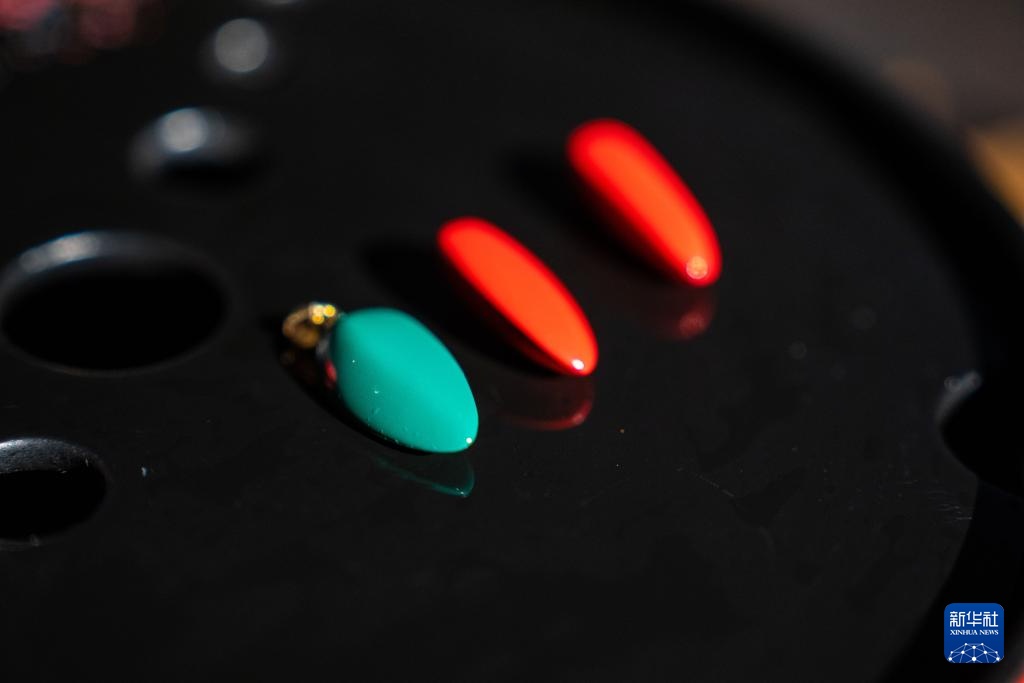 这是2月28日拍摄的郝冠雄漆艺作品——大漆瓜子吊坠。