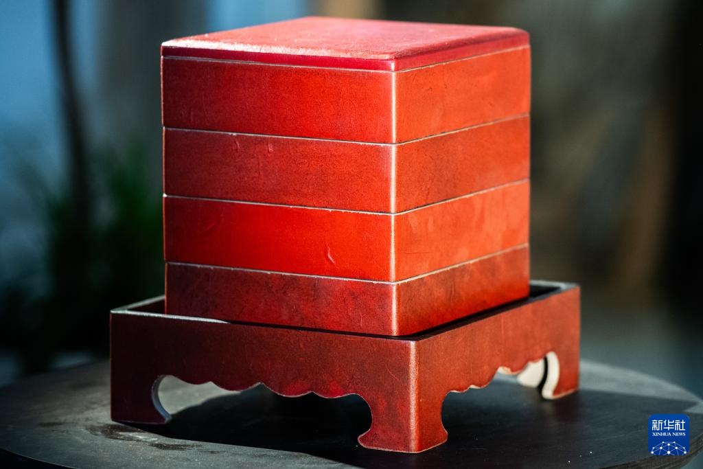 这是2月28日拍摄的郝冠雄漆艺作品——漆盒。