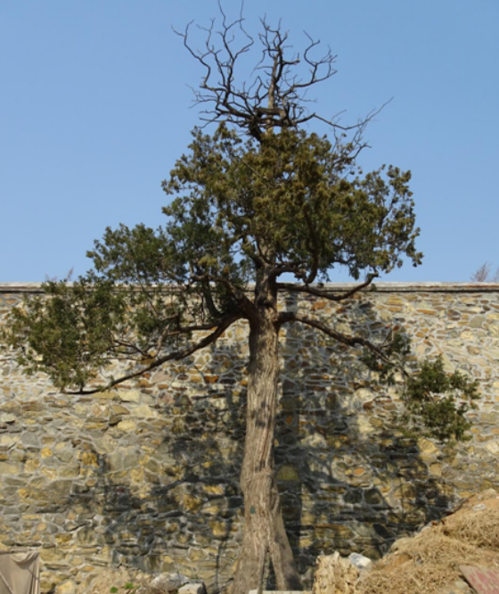 四为人字柏,位于寺庙中轴线最北端的两座碉楼之间(未开放区域),树龄约500多年;