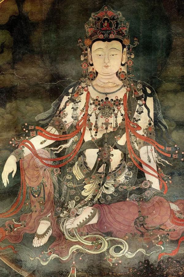 主龛背后的水月观音(局部)身上,薄如蝉翼的纱衣是裸眼3d的效果了