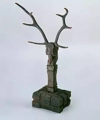 彩绘漆透雕座屏(左)—彩绘漆鹿角镇墓兽(右)