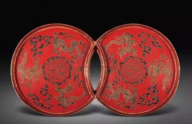 雕填漆龙纹双连盘