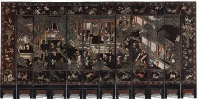 嵌百宝博古图屏风