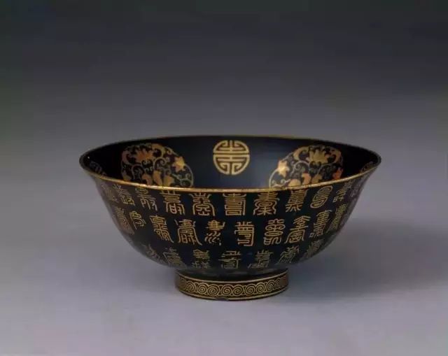 清雍正黑漆描金百寿字碗