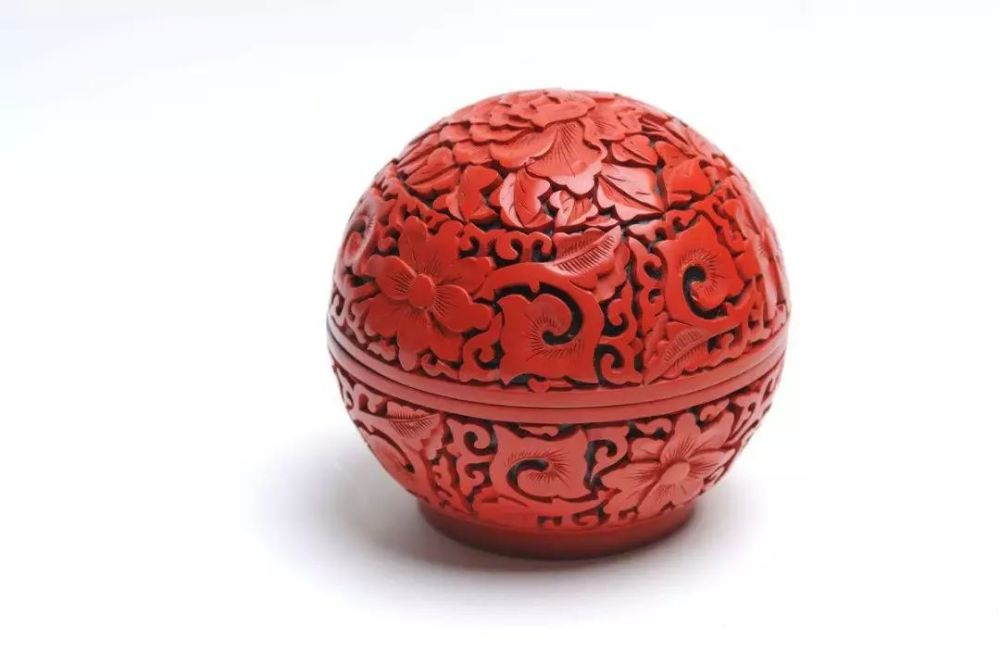从广义上来说,剔犀也属于雕漆工艺的一种,用红黑色漆相见的涂抹在底胎,当达到一定厚度后,根据用刀斜剔出卷草、如意等花纹,刀口断面清晰的显露出不同的色漆。