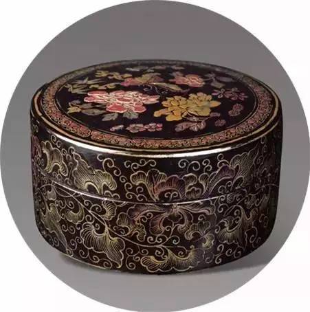 明黑漆地戗金花卉人物漆盒
