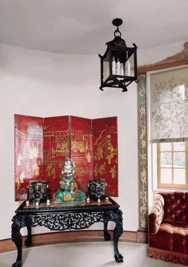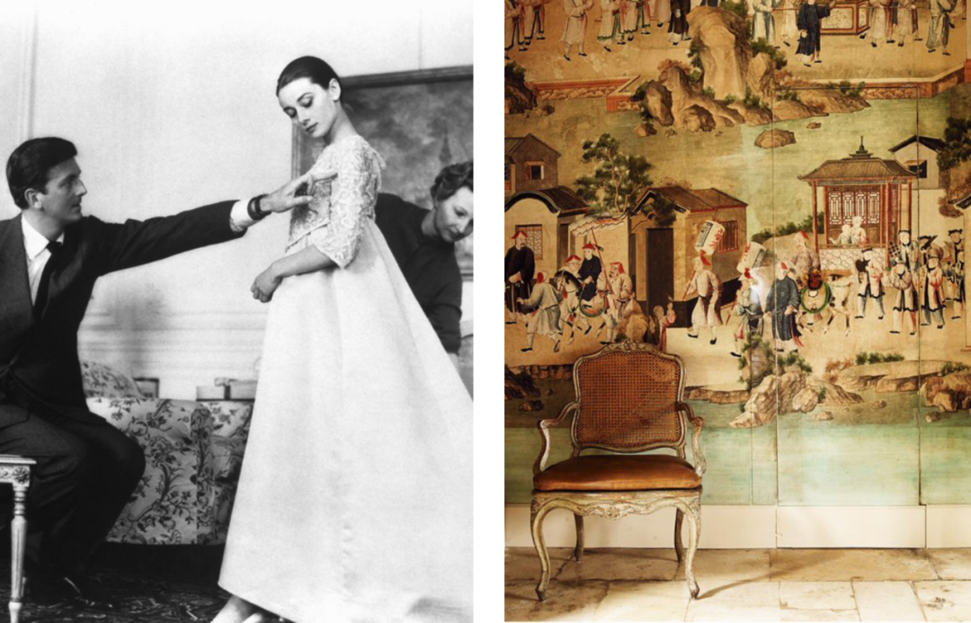 *纪梵希一直对中国画很感兴趣,他在巴黎附近的古堡庄园Château du Jonchet中,餐厅墙面上就挂了这幅十八世纪中国画。家里拥有来自神秘东方的物品,在欧洲是某种品味的象征。