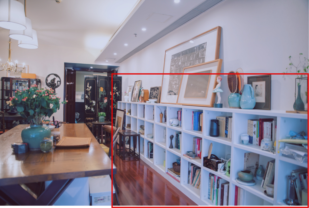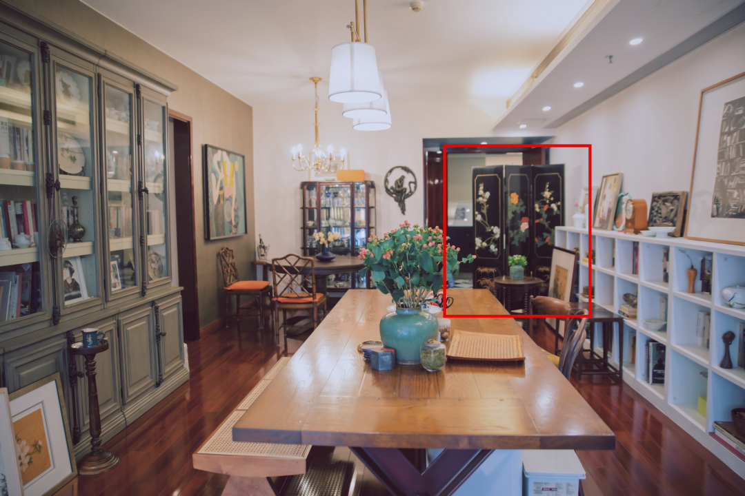 尤其她用了这面红色屏风,把客厅的饭区和观影区隔开,我看了又看,十分喜欢,问她在哪儿买的,她说是夏姐带她在白天鹅宾馆买的。