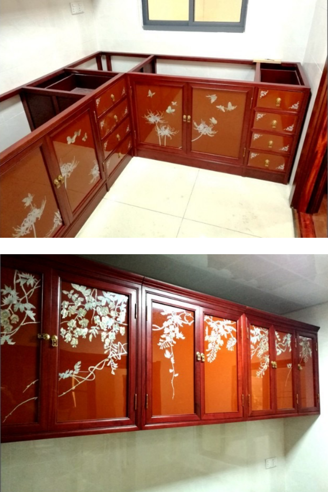 *有些人把厨房所有柜子都做成漆器,豪是豪,但是真的有点多。