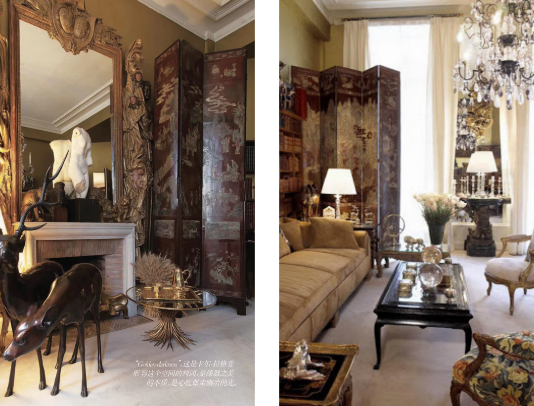 据说香奈儿一生收藏了32扇来自东方的乌木螺钿漆面,后来卡尔说这些屏风让她的康朋街公寓充满了“golden darkness”。
