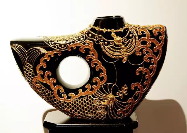 大约经过这四道程序,一件金碧辉煌、富丽堂皇的漆线雕作品也就差不多完成了。漆线雕工艺关注线条的审美特质,形态丰富多变,在创作中随心所欲而达到极高境界,中国工艺美术中的线条美在这里得到升华。漆线雕以线条盘结,而以浮雕形式展现,精细之处毫厘不爽,所有细节都非常严谨。可以说,手工是漆线雕的灵魂。