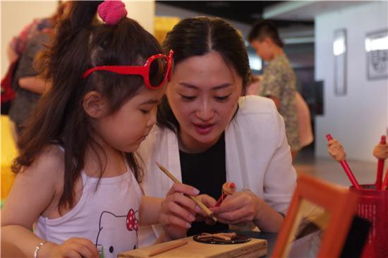 2016 年 9 月,王文静在传习课堂教授小朋友漆线雕。
