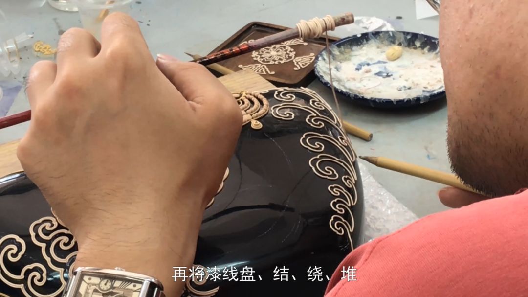 漆线雕工艺关注线条的审美特质,形态丰富多变,在创作中随心所欲而达到极高境界,中国工艺美术中的线条美在这里得到升华。漆线雕以线条盘结,而以浮雕形式展现,精细之处毫厘不爽,所有细节都非常严谨。可以说,手工是漆线雕的灵魂。