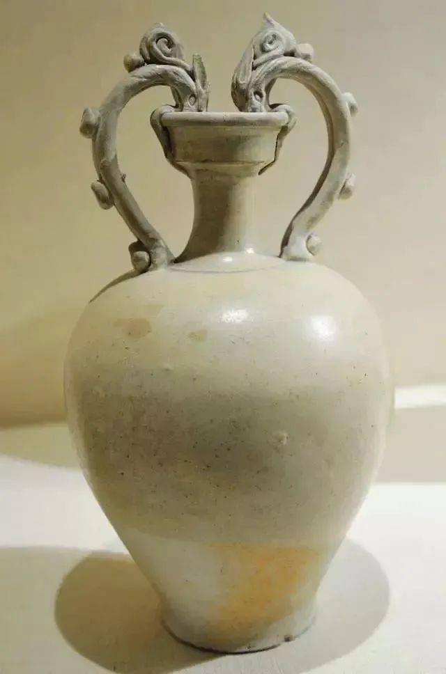其基本特征是:盘口、细长颈、罐状身,二龙口衔盘沿,尾接罐肩,呈双耳状立于瓶口两侧,故名。