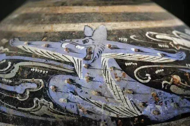 这尊彩绘陶壶,其绚丽的彩色颜料使用和自信奔放、挥洒自如的黑色笔触而达成完美的装饰效果展现了西汉时代个性张扬的一面。