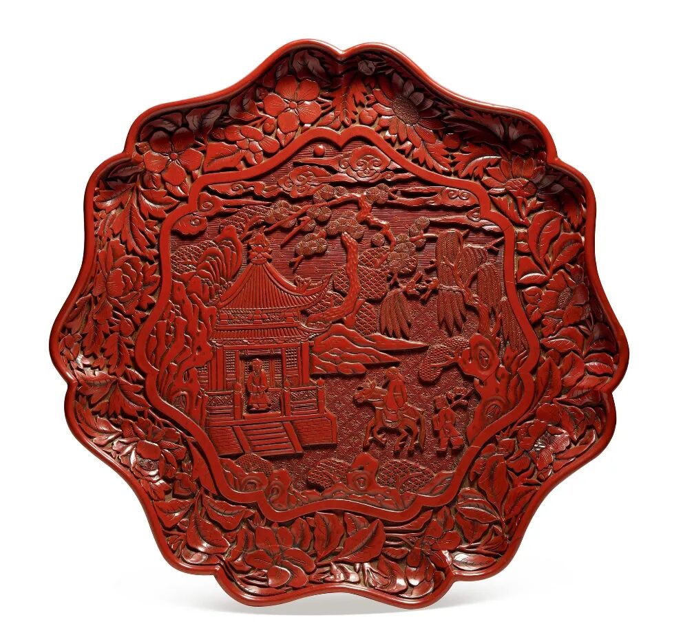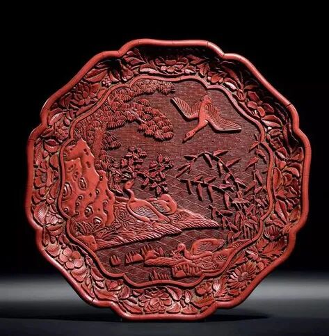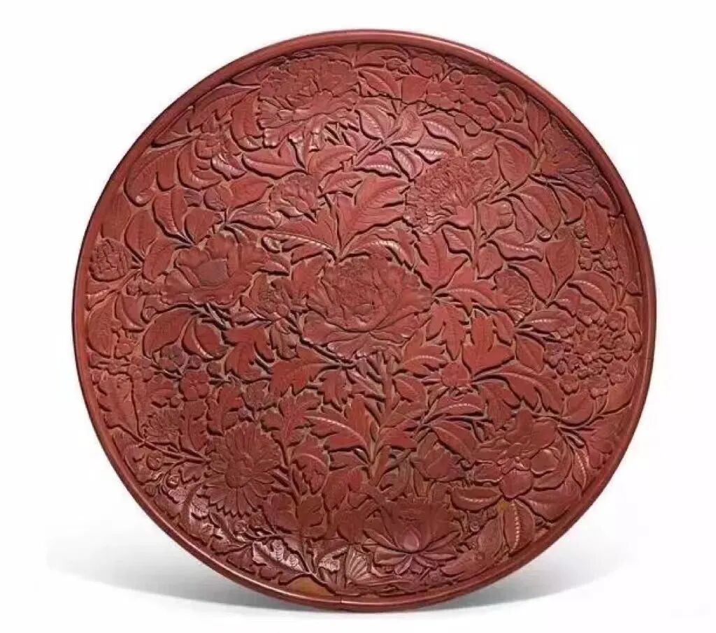 2017年伦敦苏富比中国艺术珍品拍卖会上,一件元末/明初 剔红花卉纹大盘拍出了约合人民币1400万元高价。