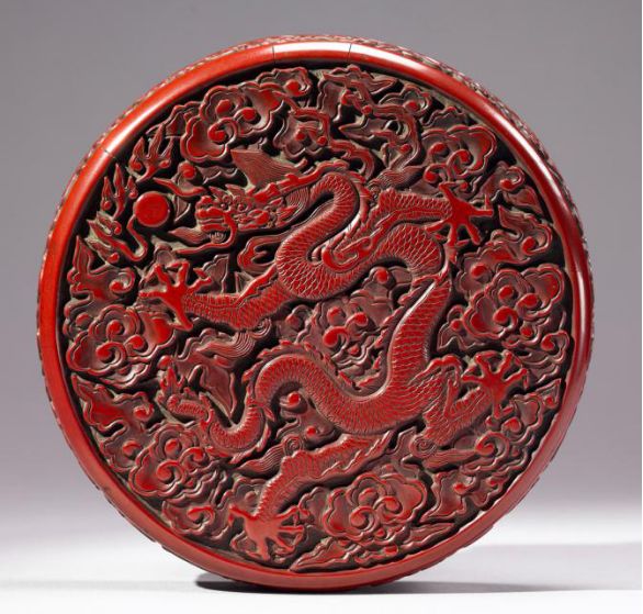 明宣德剔红云龙纹圆盒