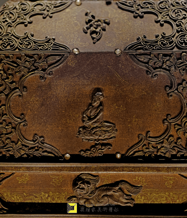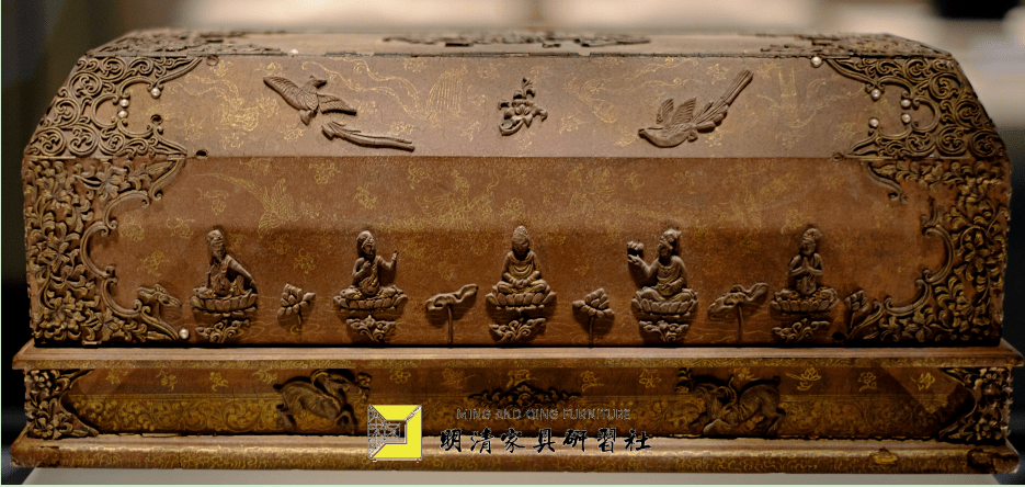 描金漆器至宋代已臻完美,如浙江瑞安仙岩寺慧光塔出土的 识文描金檀木经函便是一佳例。