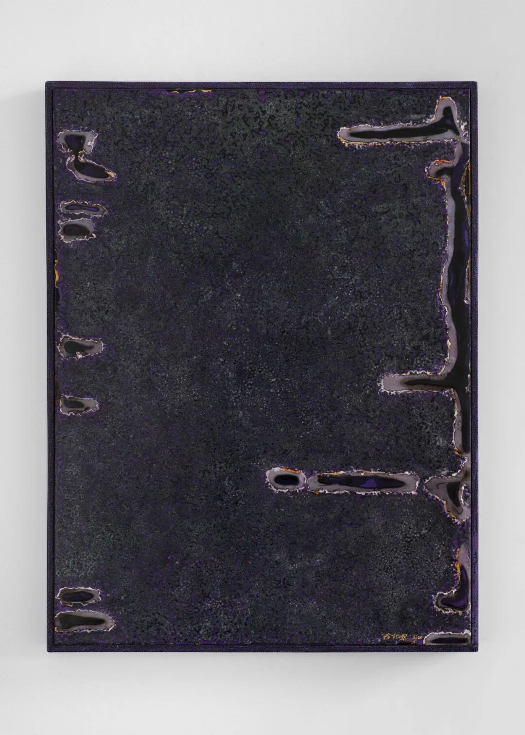 翁纪军是推动漆画在中国作为独立艺术门类的先锋艺术家,四十余年深耕于漆画的他对于大漆材料、髹饰工艺熟悉的像一个伙伴。但他并未局限于技法与图式,所谓“形而上者谓之道,形而下者谓之器”——翁纪军的漆画作品实践似乎完美地观照了这句《易经》中的古老智慧。“大漆是一种令人着迷的东西,它不只是一种材料,它会动、会变,它有脾气,大漆富于变化的氧化过程可以造就其表达的丰富性”。他与独特的漆语对话,不只是关注于材料本身所带来的视觉感受,而是将其作为诉说的主体之一,在与大漆一次次的共同行动中达成对生命的体验、哲学的感悟与对形而上精神世界的不断探寻。就此,翁纪军找到了中国哲学与抽象绘画所享有的共同语汇:将世界从“感性”与“对象”中解放出来,呈现某些不可呈现的事物,体验生命的真实。