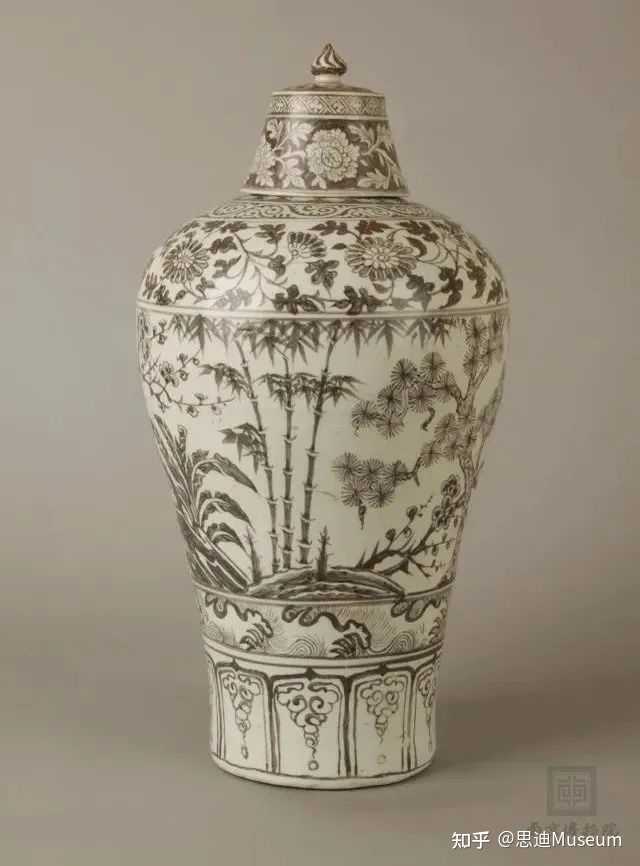 釉里红岁寒三友纹梅瓶