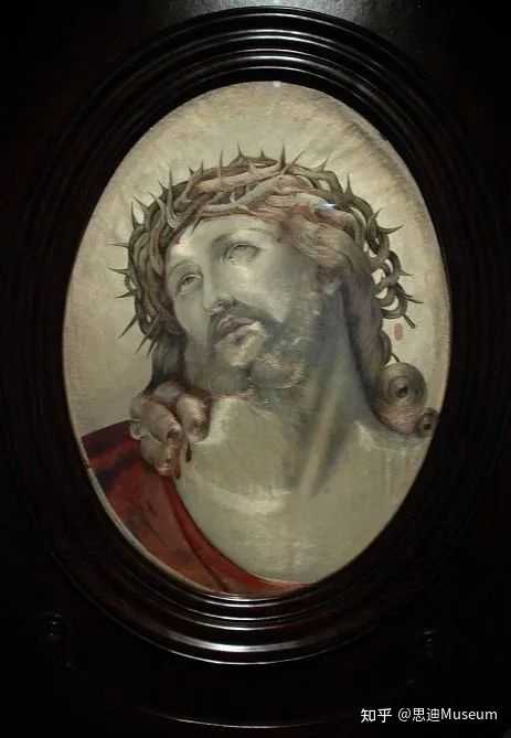 《耶稣像》是一幅民国绣品,出自刺绣国手沈寿。此展品以文艺复兴晚期意大利画家琪特的油画耶稣画像为原本,创造性地运用了虚实针、旋针等新针法,并根据人物肌肤丝理的需要和油画明暗层次变化,选用100余种不同色泽的丝线绣制,惟妙惟肖、栩栩如生。