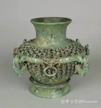 战国末错金银铜壶分身、座、镂孔装饰三部分。镂孔装饰分上下两组,上组罩在肩的上部,下组罩在腹的外部,每组以48条蟠螭互相结成镂孔底纹,上饰梅花朵,上组48竖行,每行3朵,下组48竖行,每行约9朵,下部已残,均交叉状排列,组间以横箍连结成罩形,上端的颈底相接,下与座沿相连。横箍外壁饰有错金银流云纹套环,环周有等距铺首4个,面有嵌饰,两侧饰蟠螭,衔环有错金卷云纹。铺首间有错金、银兽形四竖系。壶口内沿刻篆书铭文一行;座沿外侧细刻篆体铭文一周20余字。