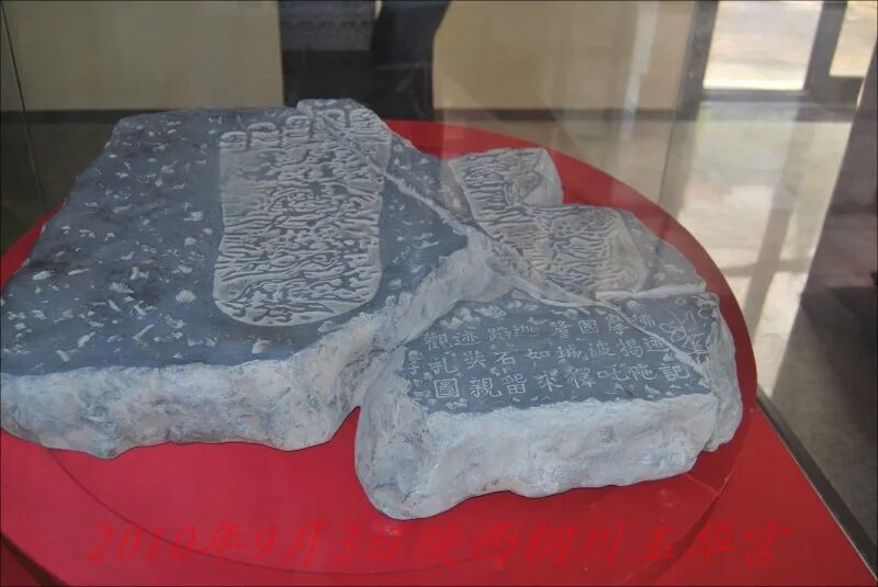 2001年陕西玉华宫遗址考古中曾发现玄奘拓刻的佛足印刻石中的题字部分残块,据报道,此次考古从2000年开始,发掘范围主要是玄奘圆寂的唐玉华寺肃成院。通过所打二百多个探眼,考古人员发现这里地表以下依次存在清、明、元、宋、唐及新石器文化层,文化遗存丰富。经铜川市考古人员八个月的工作,至2001年4月初已发掘至元代文化层,出土了一批珍贵文物。五十年代时考古人员曾此处发现玄奘雕就的从印度拓印回的如来佛足印刻石,经考证它是中国最早的佛足雕造,但可惜佛足印石已残约三分之一,仅余三字。而此次考古出土的佛足印残块,正是有题字的部分。残块呈不规则四边形,未清理的表面清晰可见“佛迹记”、“摩羯陀国”、“释迦”、“奘亲观礼图”等字样。