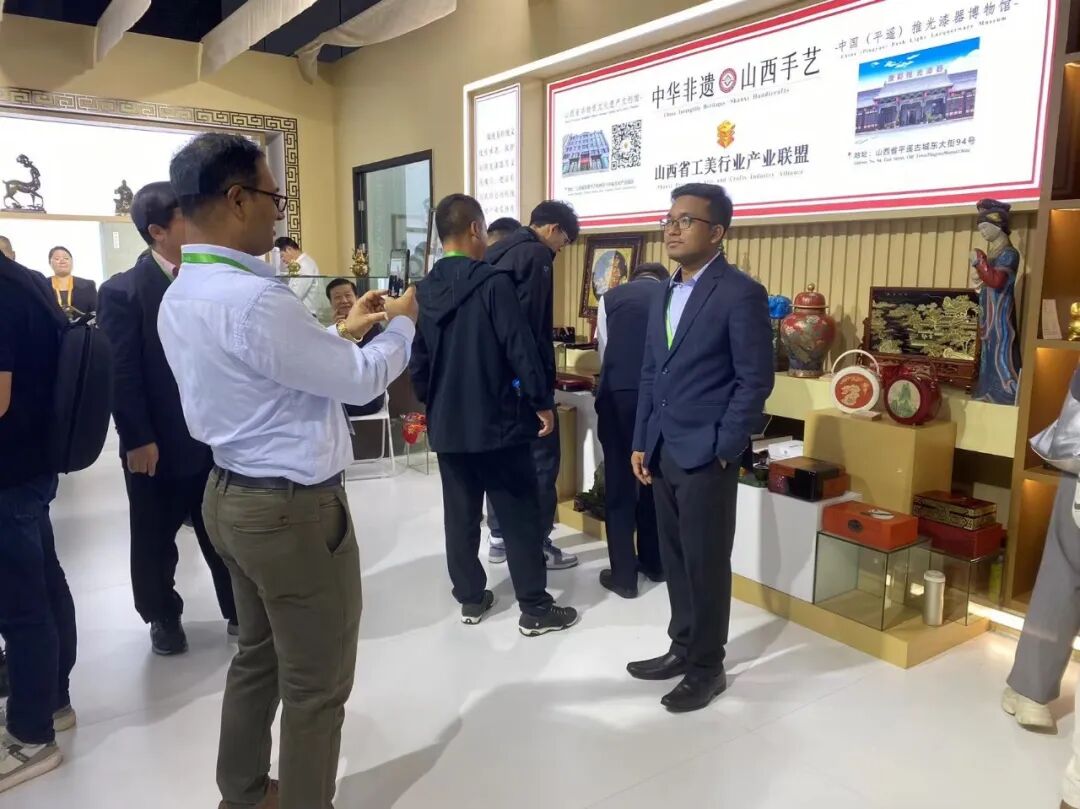 走进山西展厅,“美丽乡村”“特色旅游”“十大专业镇”等九大专区全方位展示山西省建设内陆地区对外开放新高地发展成果,尽显“山西范儿”。其中,平遥煤化集团唐都推光漆器展位吸引了众多参展商和观众的目光,其精湛技艺、匠心产品、非遗文化及创新成果,尽显三晋文化魅力,受到了国内外客商的喜爱与好评。