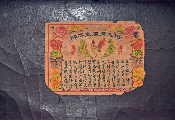 收藏家陈泽满收藏的阳江“广泰成”漆皮箱商标。李向东 摄