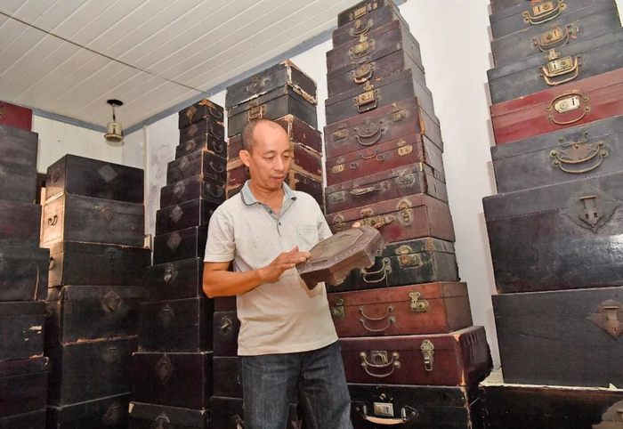 收藏家陈泽满收藏的阳江漆皮箱。李向东 摄