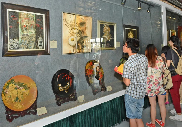 游客在参观阳江漆艺院的漆艺作品。李向东 摄