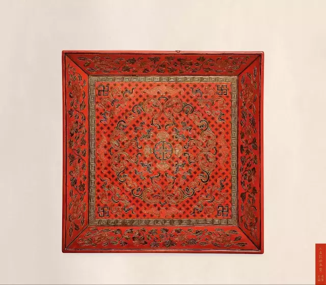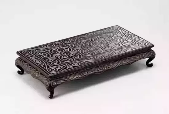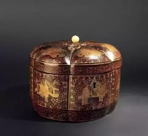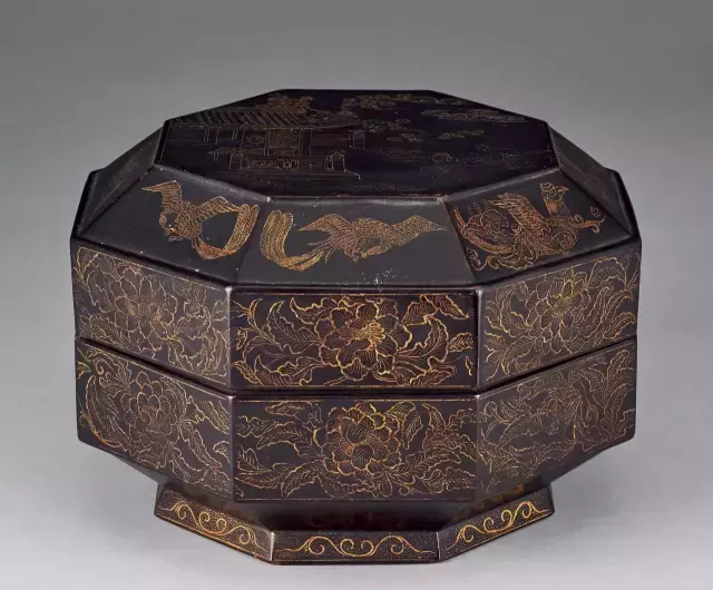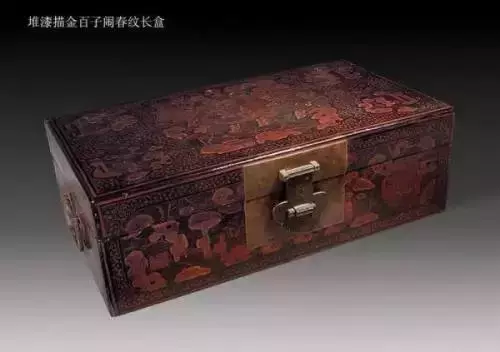 先在漆地上刻画出图案,于刻纹内上漆后,然后填以金银箔,效果极其富丽。