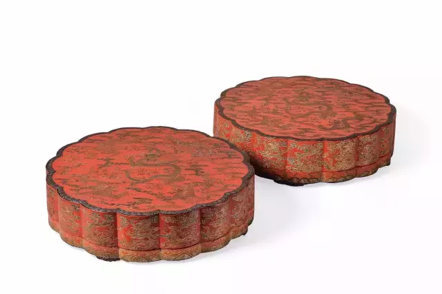 清乾隆 雕填金漆龙纹大盖盒 (一对)