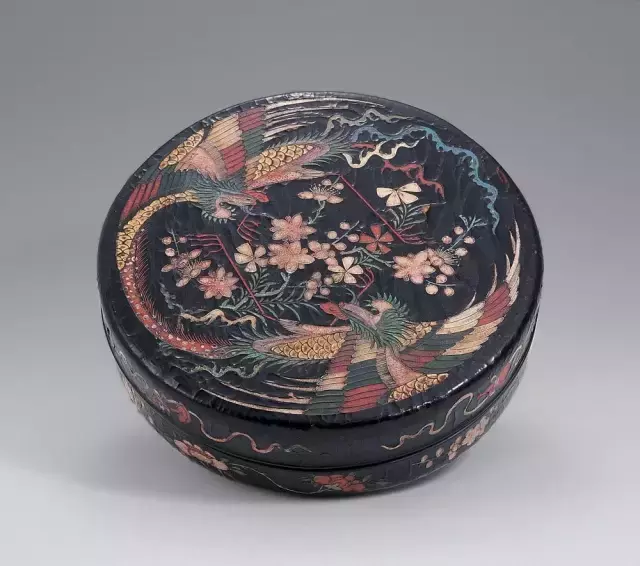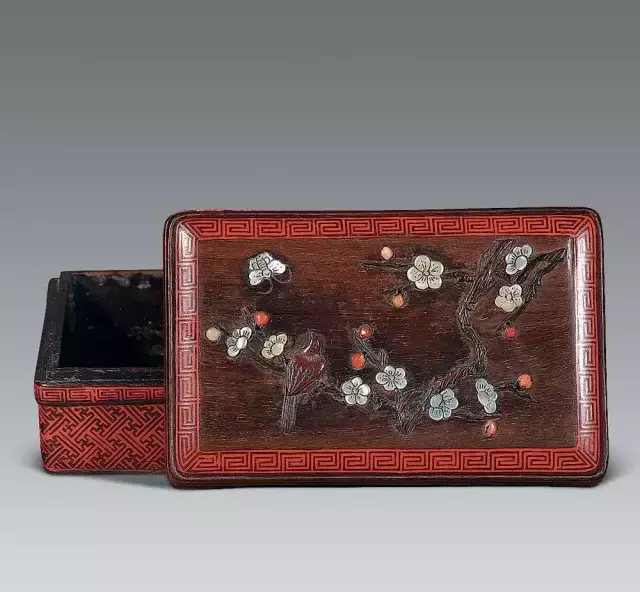 清 紫檀嵌百宝描漆花鸟纹盖盒