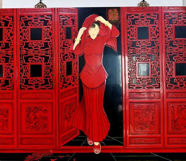 都说“一个成功男人的背后一定有个优秀的女人”,这话对钟宏云来说再贴切不过了。那年21岁的他,遇上了一位有德有貌的“七仙女”,她的名字叫徐德蓝。我不知道神话故事里的董永是以什么吸引七仙女的,但我知道钟宏云是以他的娴熟漆画技艺吸引了徐德蓝。月下老人悄悄地安排钟宏云到徐德蓝的一位亲戚家做漆,徐德蓝在旁看得入迷。瞧他,随便拿了块橡皮头就能在漆器家具上画出栩栩如生的花鸟虫鱼,真是太神奇了!这时的徐德蓝正值豆蔻年华,刚好初中毕业没事可做,就主动提出拜他为师。这下可把小钟乐坏了,马上爽快答应了这桩美事。