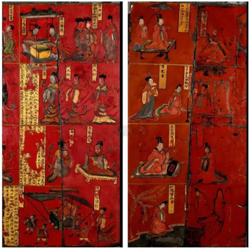 | 相隔千年的历史人物在此“同框” 1500年时光流逝 它颜色不改 艳丽依旧 今天一起认识 木板漆画 跨越千年来“同框” 一块屏风上演文化大融合 出土于北魏贵族司马金龙墓的木板漆画 是一组人物故事彩绘漆屏风 朱漆打底,黑漆勾线 内容出自《列女传》等汉代文献 描绘了帝王、孝子等人物故事 ![]() △木板漆画局部 在这个屏风上数名相隔千年的传奇女性 跨越时空完成了一次“同框” 上古时代的帝舜之妻娥皇、女英 商朝的周太姜、周太任、周太姒 以及汉代汉成帝嫔妃班婕妤 都出现在了这一屏风上 ![]() △“班姬辞辇”的故事,汉成帝坐在四人所抬的龙辇上,却因挂念爱妃班婕妤而频频回首。班婕妤劝勉他勤于政事,不愿效法历史上误国的妃嫔,而婉拒与汉成帝同辇出行。 这些屏风画与石床组合 正反两面均有图案 既有装饰作用 又可以在耳濡目染中 让人受到这些历史故事的教化 ![]() 北魏政权由生活在北方的鲜卑人建立 然而这一漆画上的故事 都是来自汉代文献记载的 体现汉文化及儒家价值观的故事 且画中的人物服饰 多为当时南方的着装风格 可见当时各民族文化 以及南北方文化的融合程度 与顾恺之名画高度相似 美术价值极高 木板漆画颜色浓重艳丽、主题突出 人物的描绘细致灵动 ![]() △“周室三太”周太姜、周太任、周太姒(似) 拖地的裙摆衬以飘浮的裙带 人物的立体感瞬间提升 是不是越看越有些眼熟 这里的绘画技法 与东晋顾恺之的“春蚕吐丝描”十分相似 线条描绘细腻灵动 绘画风格也很接近 《女史箴图》《洛神赋图》 ![]() △左《木板漆画》 右《女史箴图(摹本)》 ![]() △《顾恺之洛神赋图卷(宋摹)》(局部) 故宫博物院藏 这两幅东晋顾恺之的名画原作已经失传 由于年代接近 木板漆画的发现 无疑为后人推断这两幅画的年代 提供了重要依据 而木板漆画本身的技法、风格 也在继承汉代遗风的基础上继续开拓 在中国古代美术史上有承上启下的作用 至今难以完美复制 千年之后依然艳丽 漆画以大漆为基本材料 加以颜料调和 大漆取自天然漆树 ![]() 为了漆树的持续生长 一棵漆树要生长数年之后才可以取漆 且每次割漆要间隔一段时间 因此大漆产量极低 造成原料成本高 制作过程需要反复打磨 层层镶嵌、磨平 极费时间和人工 高成本与复杂的制作工艺 使漆器的制作逐渐变少 工艺也未能完全流传下来 现代尝试对木板漆画进行复制 颜色仍然未能完全一致 历经千年朱颜未改 我们从木板漆画上不仅看到了绘画之美 更有古老的漆文化之光依旧闪耀 ![]() 监制丨唐怡 制片人丨武慧锋 毕磊 文案丨杨瑾 视觉丨林琦 技术丨汤沛 审校丨朱冬梅 统筹丨刘莹 帅钟琴 资料支持丨闻家齐 特别鸣谢丨山西博物院 总台山西总站 中国文物报社 责任编辑:贾宏伟 |