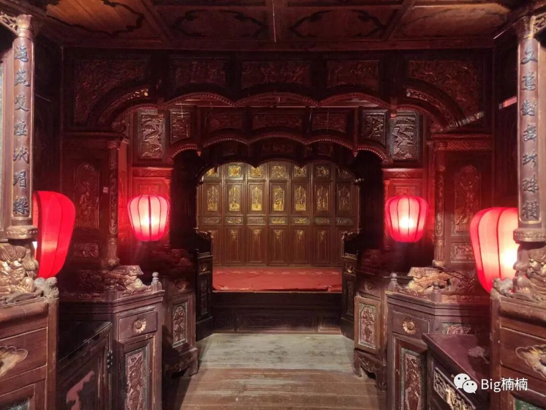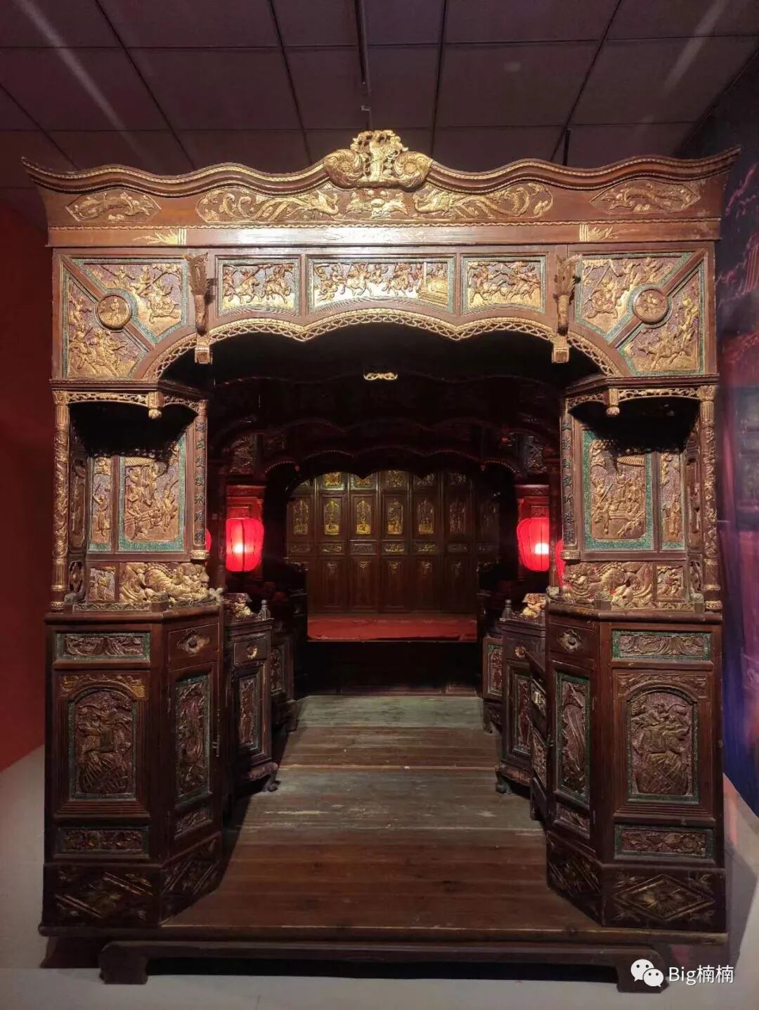 (金漆木雕四进拔步床,拔步就是迈步的意思,意为这种床必须要走几步才能上去。这种床型是千工床中最隆重的一种,产生于明代晚期。)