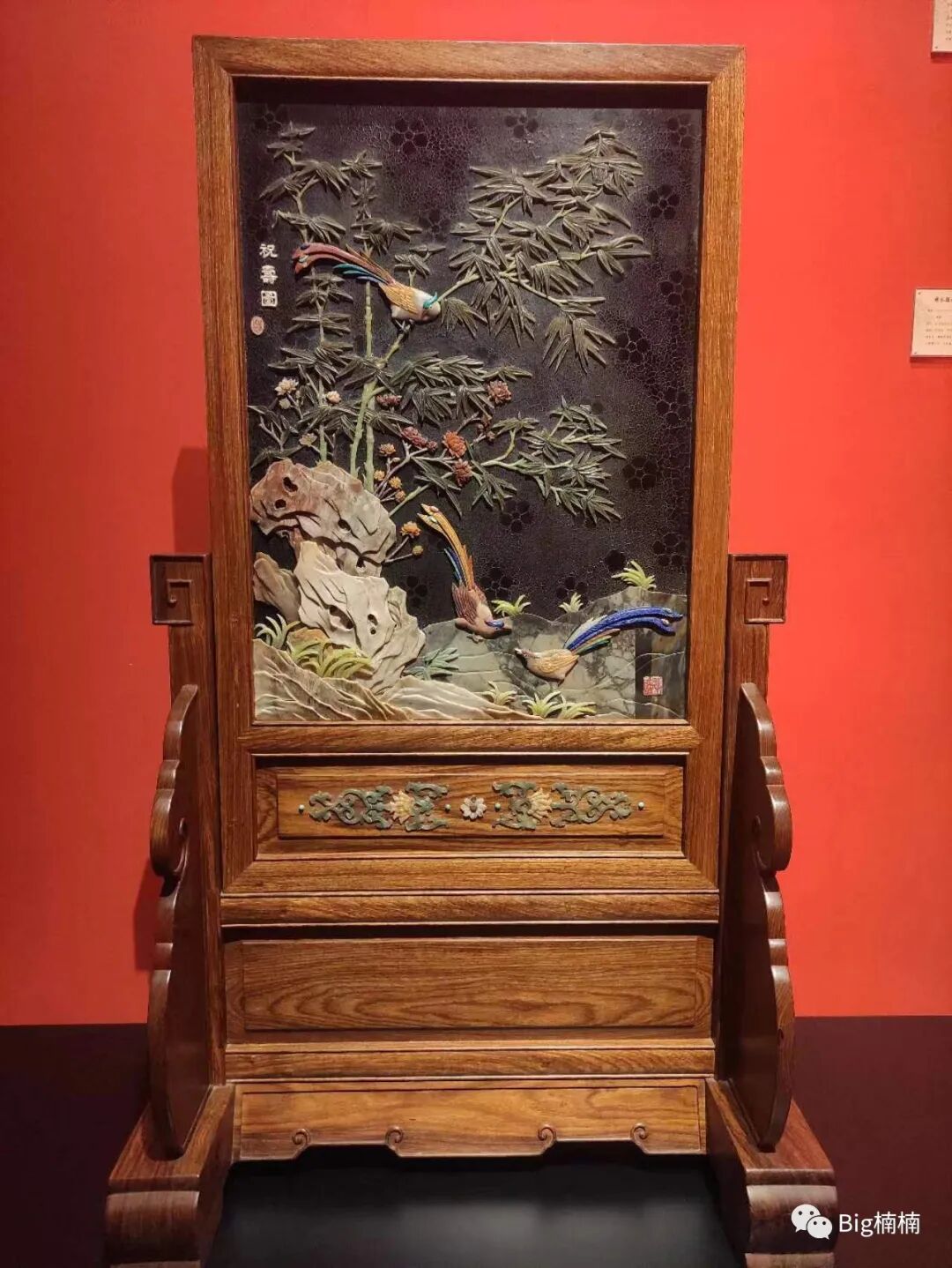 (镶嵌《祝寿图》座屏,工艺:镶嵌,断纹。)
