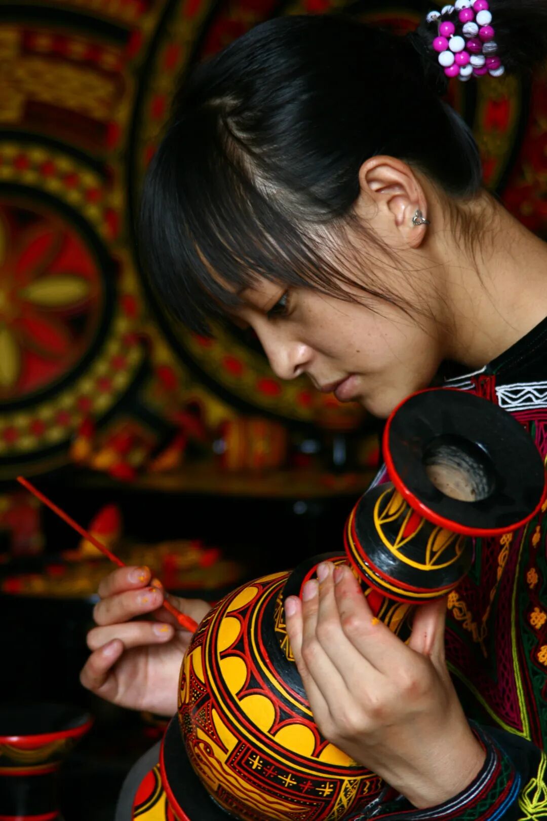 漆载文化,妙笔生花,流淌在器皿上的漆髹,是彝族人世代相传的指尖绝技,也是民族文化的延续与发展。