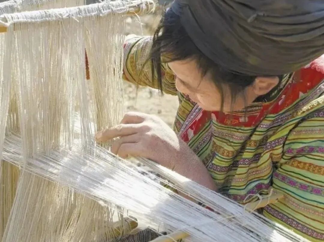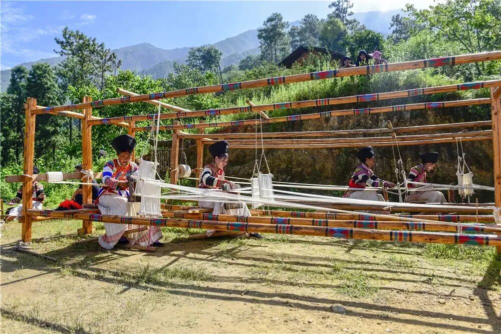 用“火草”“火麻”的植物纤维,纺织而成火草布、麻布来制作服饰,是傈僳族古老的纺织工艺。