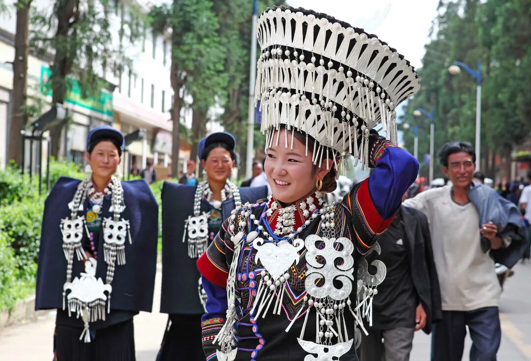 彝族人民自古喜爱银饰制品,每逢节日,处处可见盛装的彝家姑娘从头到脚都是熠熠发光的银饰,摇曳生辉、鲜亮夺目。