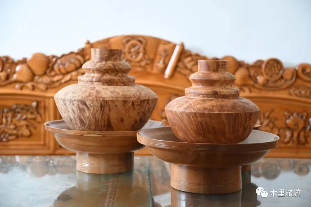 藏式木制茶具从选取材料至做出成品需要长达数月的时间制作,且茶具外形及尺寸全在手工艺人的感觉之中,靠个人技术来决定成品的优劣,是一项纯手工艺的工作项目。因其纯天然绿色无毒的制作材料,茶碗茶筒的别致造型,配以精湛工艺,其淳朴民族的风格,极富欣赏和收藏价值,深受当地游客和木里人民的喜爱。
