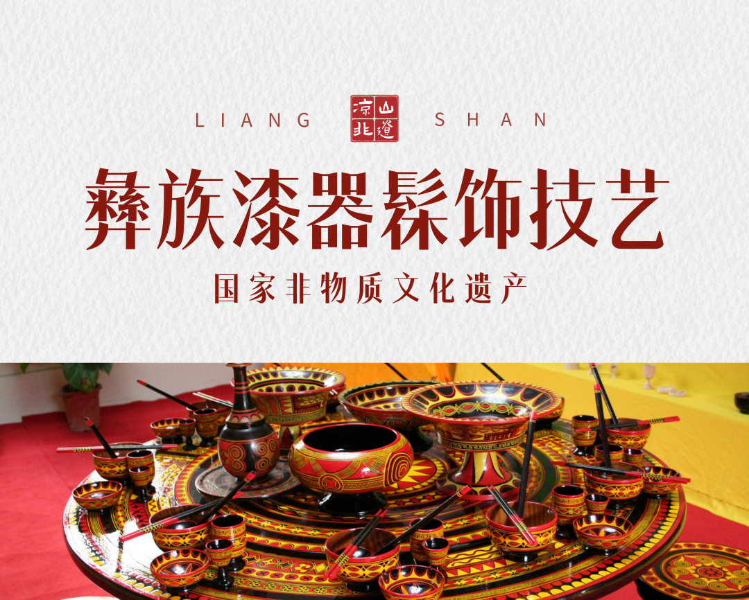 彝族漆器起源于喜德县,这一民间手工技艺,已有千年的传承和发展史。彝族漆器髹饰技艺具有多方面的优点,制作出的漆器产品做工精致、造型多样、美观大方,无毒、无异味、耐酸碱、耐高温、不变形。