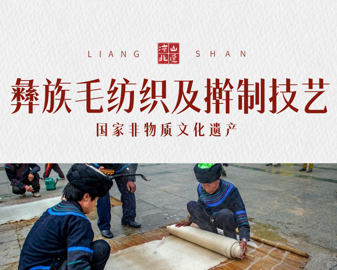 毛纺织及擀制技艺(彝族毛纺织及擀制技艺)工序复杂,费工费时,2008年被列入第二批国家级非物质文化遗产代表性项目名录。